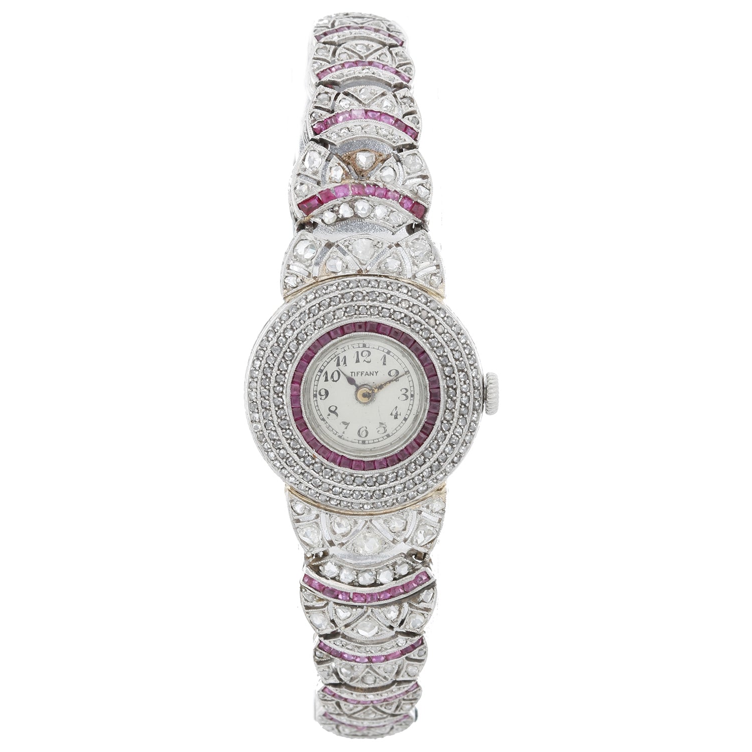 Tiffany Art Deco Ladies Platinum Diamond and Ruby Watch