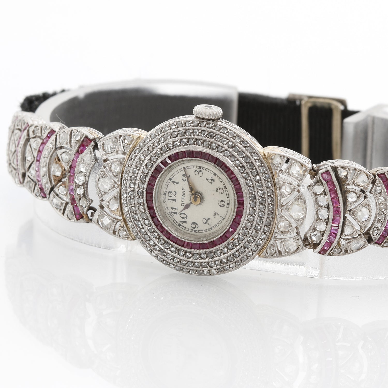 • Tiffany Art Deco Ladies Platinum Diamond and Ruby Watch