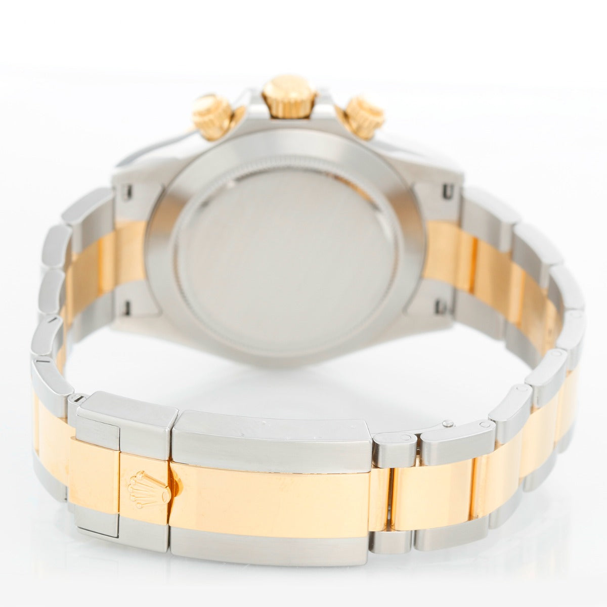 Rolex Cosmograph Daytona Men's Watch 116503 - Automatic winding, chronograph, 44 jewels, sapphire crystal. Stainless steel case with 18k yellow gold bezel. Black dial with stick hour markers. Stainless steel and 18k yellow gold Oyster bracelet with flip-lock clasp. Pre-owned with Rolex box and card. Dated 2019.
