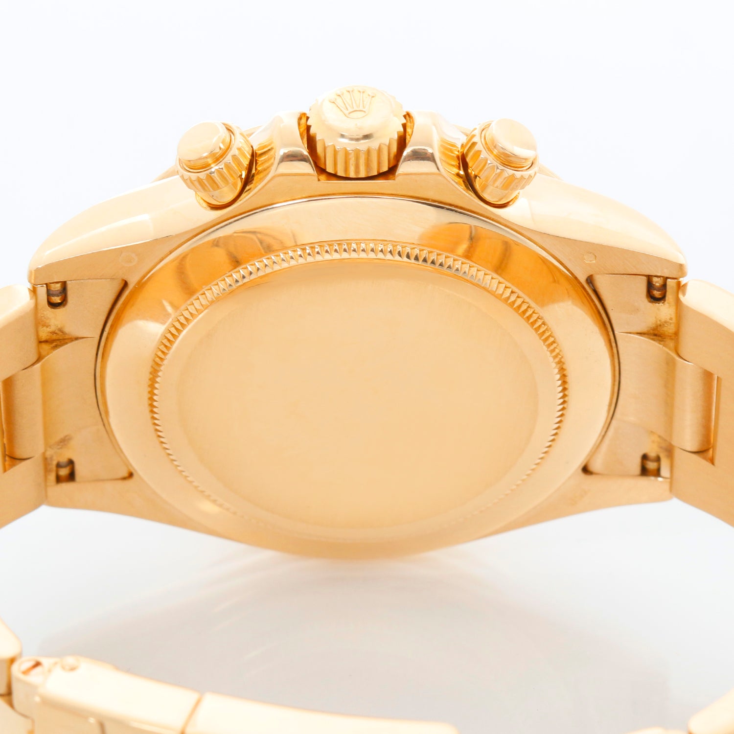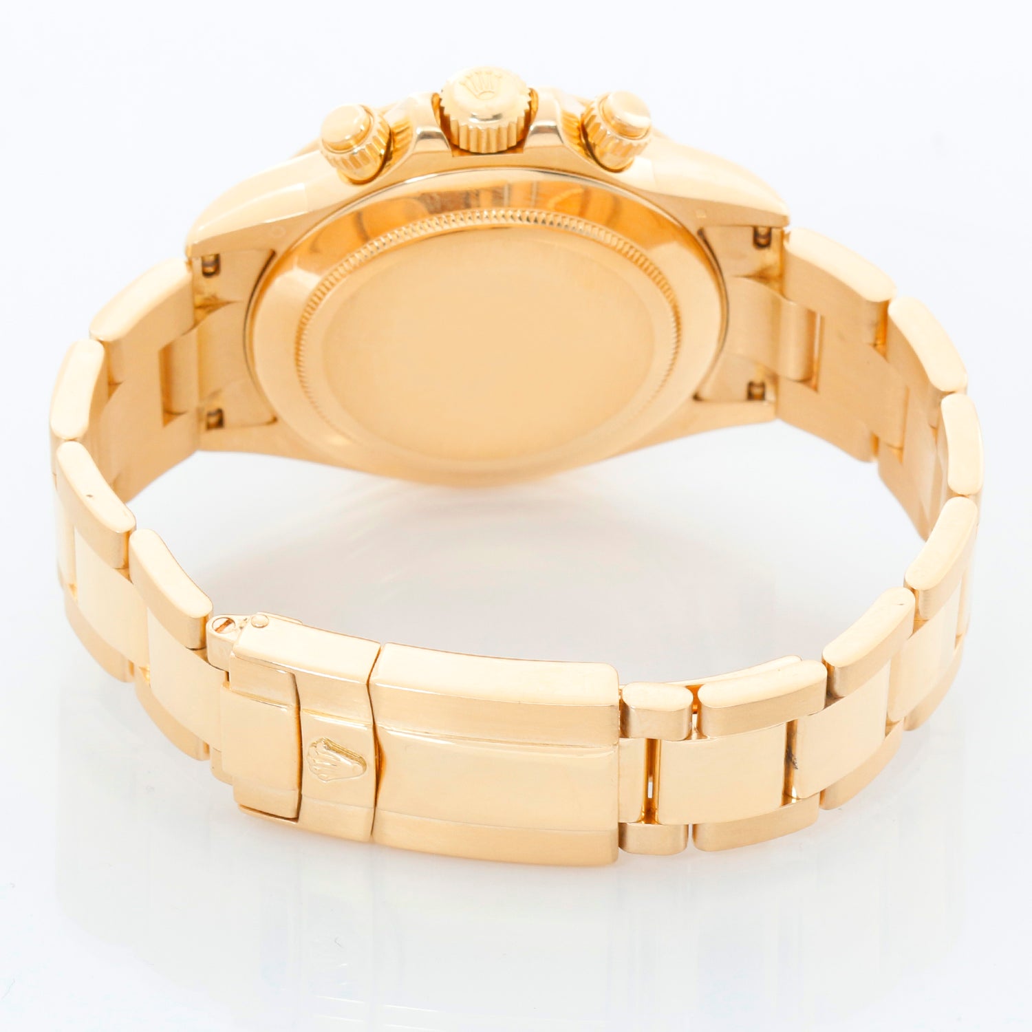 Rolex Cosmograph Daytona Men's Watch 116528 - Automatic winding, chronograph, 44 jewels, sapphire crystal. 18k yellow gold case and bezel . Factory Mother of Pearl with diamond hour markers . 18k yellow gold Oyster bracelet with flip-lock clasp. Pre-owned with Rolex box and book