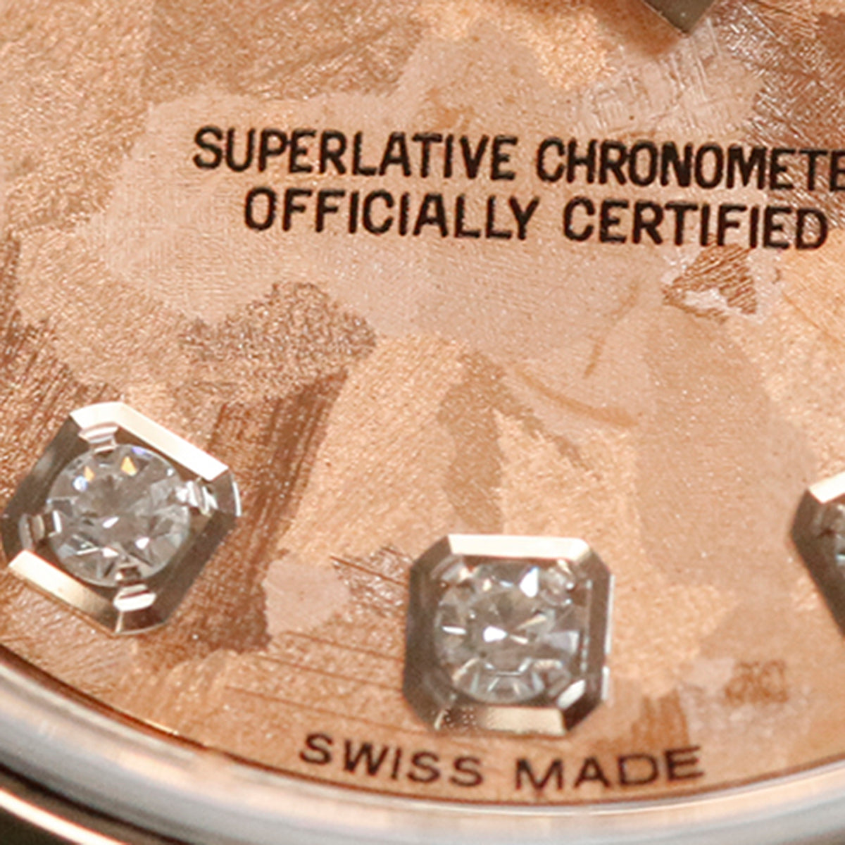 Rolex Datejust Ladies Stainless Steel Watch 179160 - Automatic winding; 31 jewel; sapphire crystal. Stainless steel case with smooth bezel (26mm diameter). Factory pink gold crystal dial with diamond hour makers. Stainless steel Oyster bracelet. Pre-owned with custom box