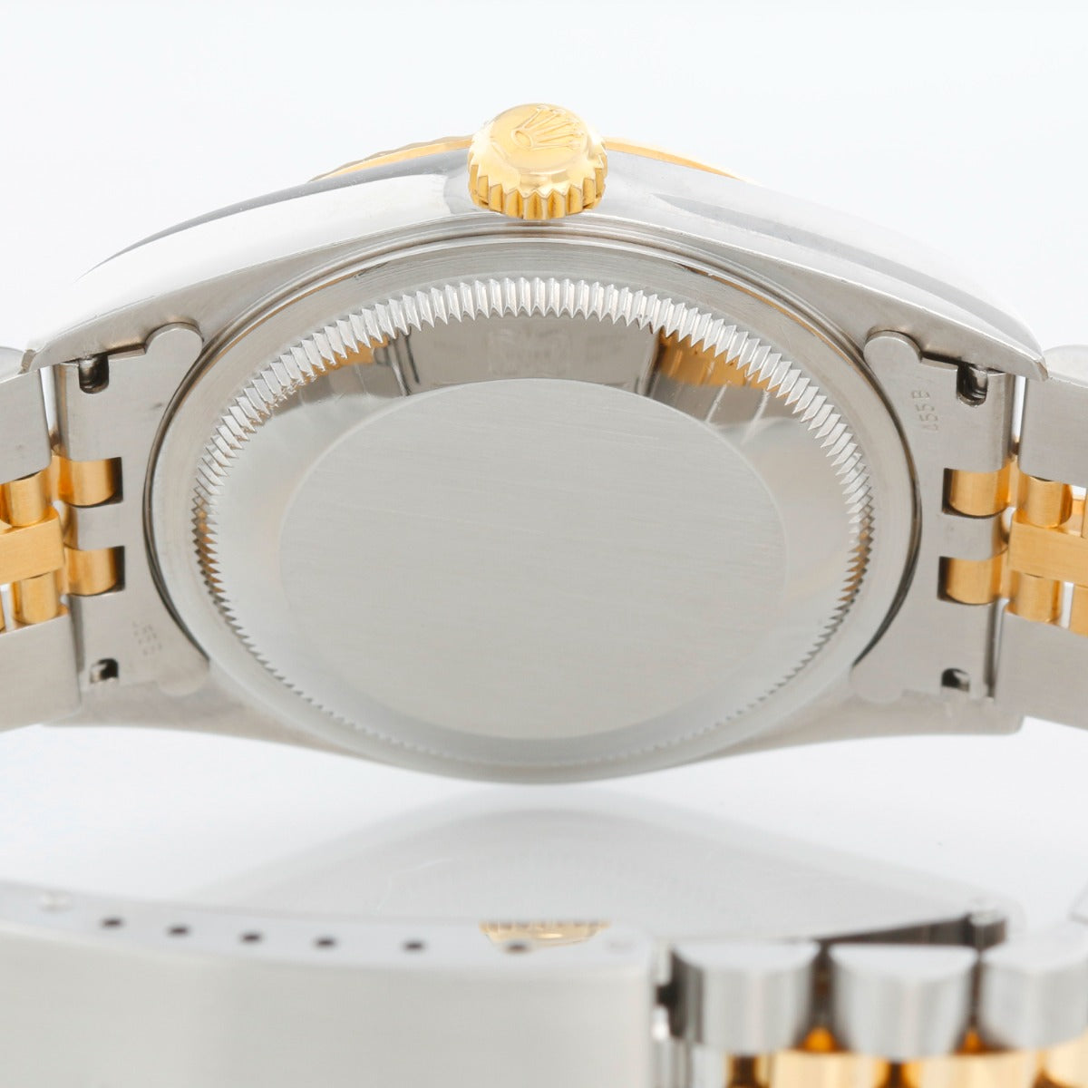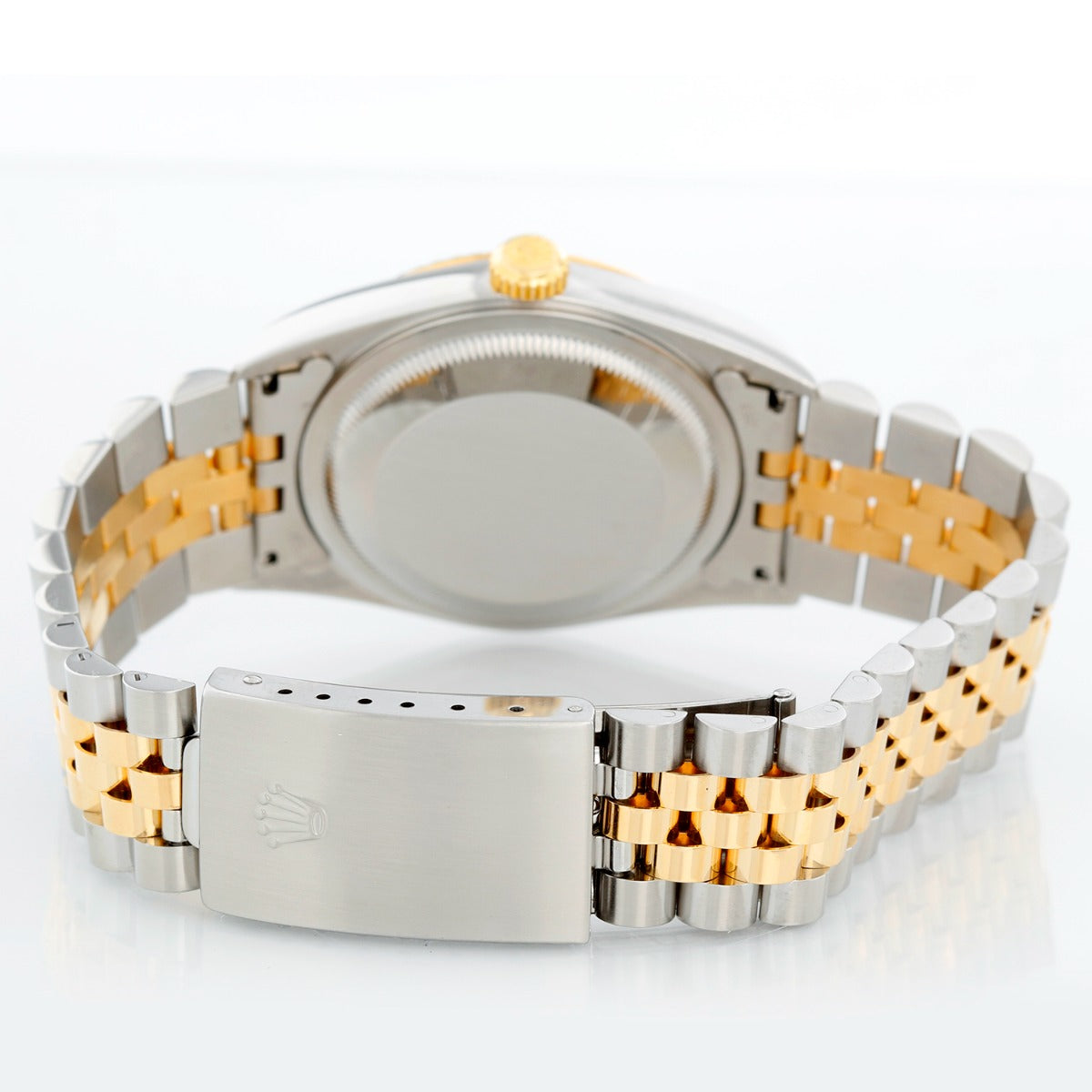 Rolex Datejust 2-Tone Men's Steel & Gold Watch 16233 - Automatic winding, Quickset, sapphire crystal. Stainless steel case with yellow gold bezel (36mm diameter). Factory Mother of Pearl Diamond dial. Stainless steel and 18k yellow gold Jubilee bracelet. Pre-owned with custom box.