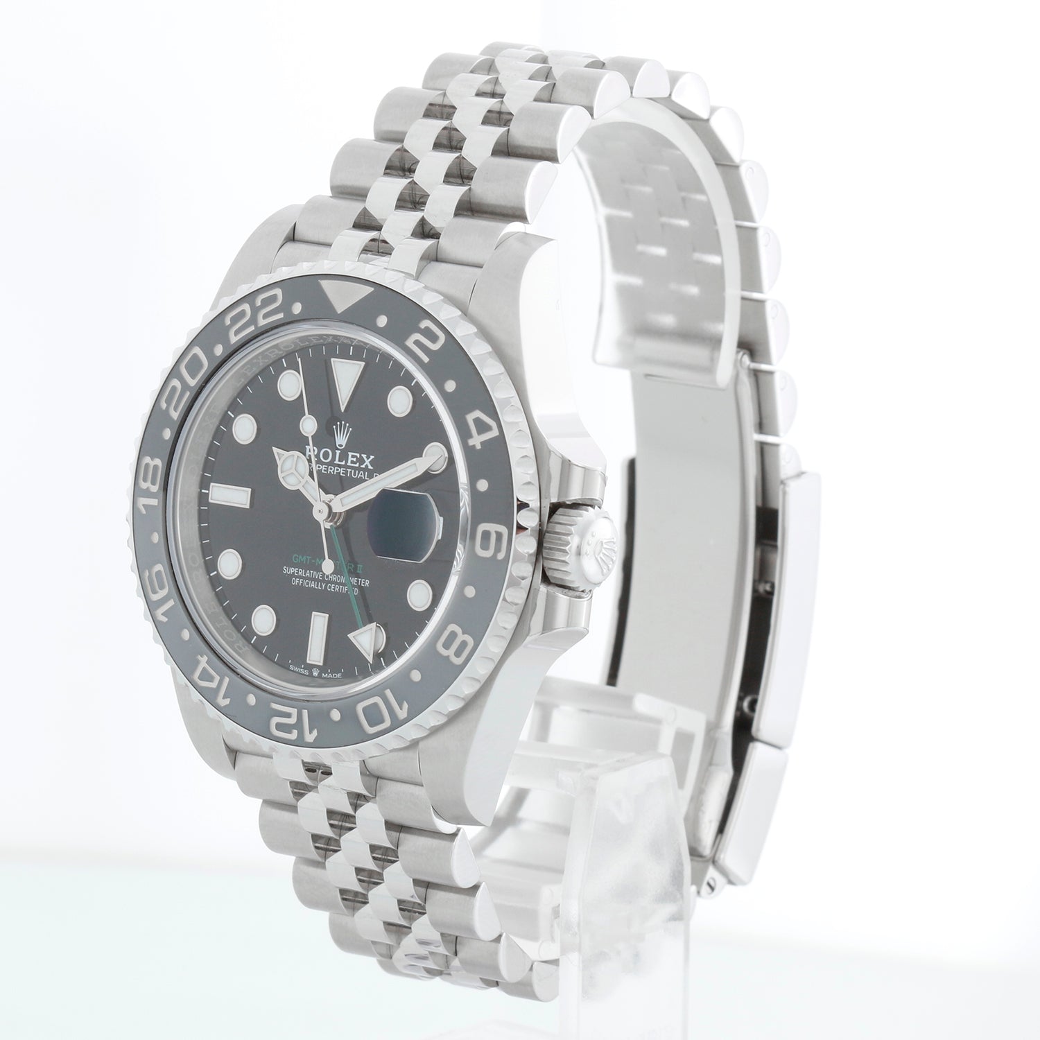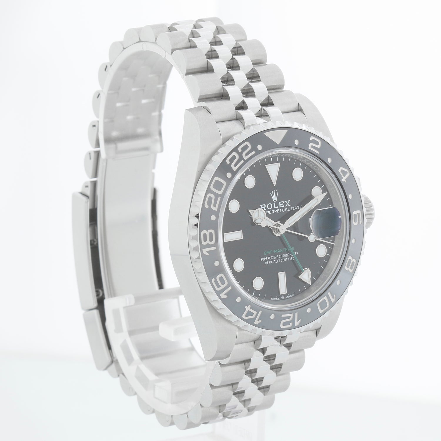 Rolex GMT - Master II 126710 GRNR Stainless Steel Men's Watch " Bruce Wayne " - Automatic winding; 31 Jewels. GMT-Master II. Stainless steel case with 24-Hour Rotatable, Black and Silver Cerachrom Ceramic Bezel ( 40 mm ). Black dial with luminous hour markers. Stainless steel Jubilee bracelet. Like with Rolex box, book and card. dated 2025.