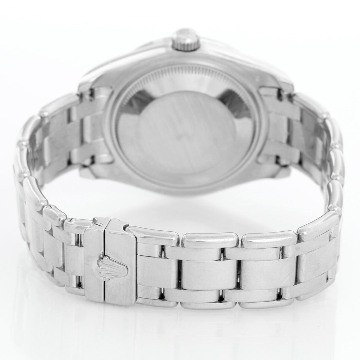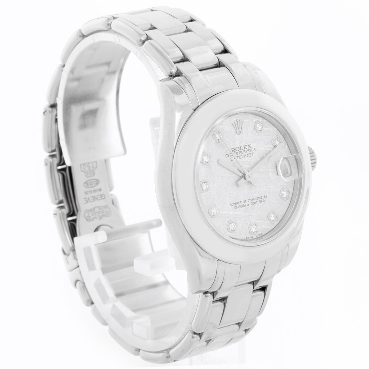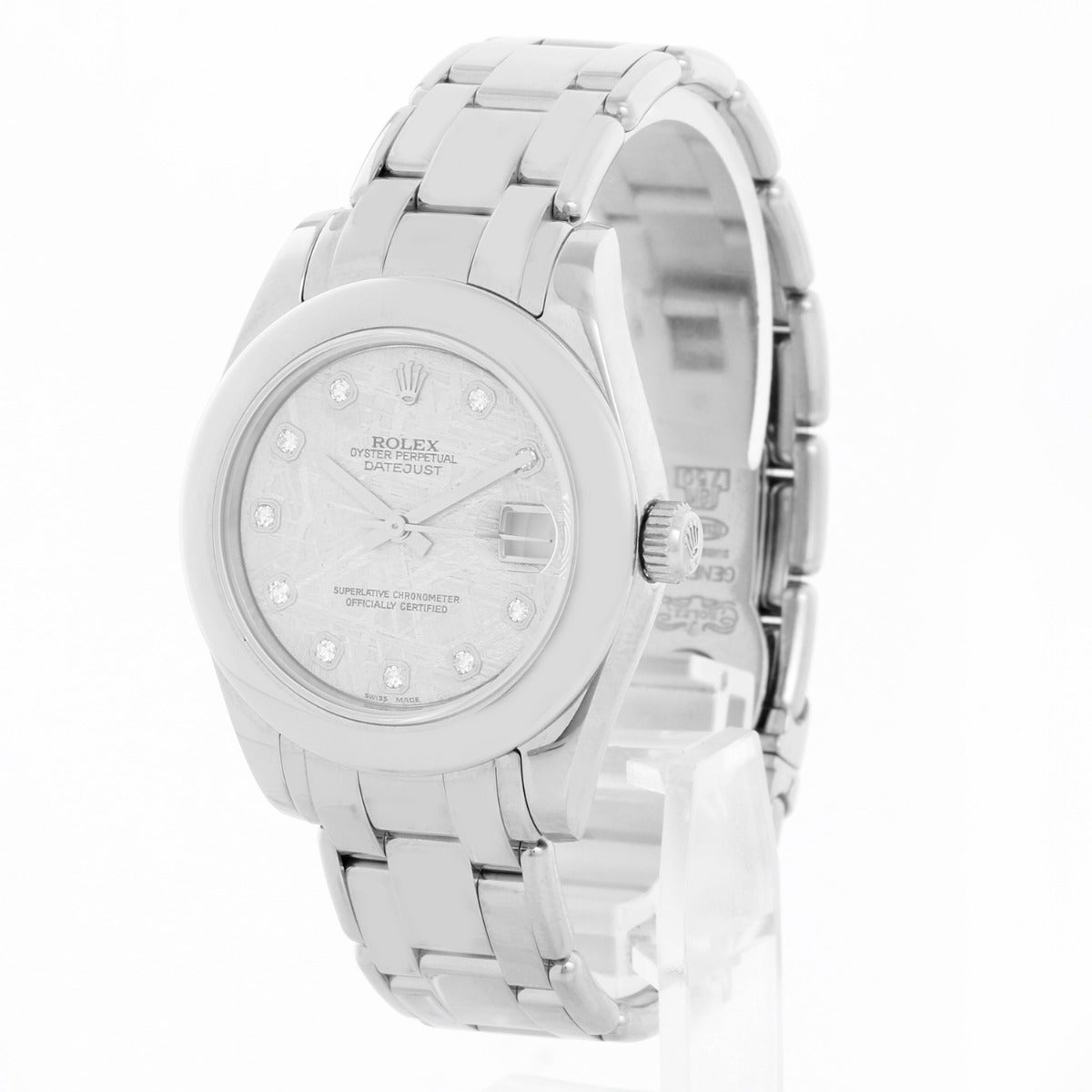 Rolex Ladies Pearlmaster Midsize White Gold Watch 81209 - Automatic winding, 31 jewels, Quickset, sapphire crystal. 18k white gold case with polished dome bezel (34 mm ). Factory Meteorite diamond dial. 18k white gold Pearlmaster bracelet. Pre-owned with Rolex travel box