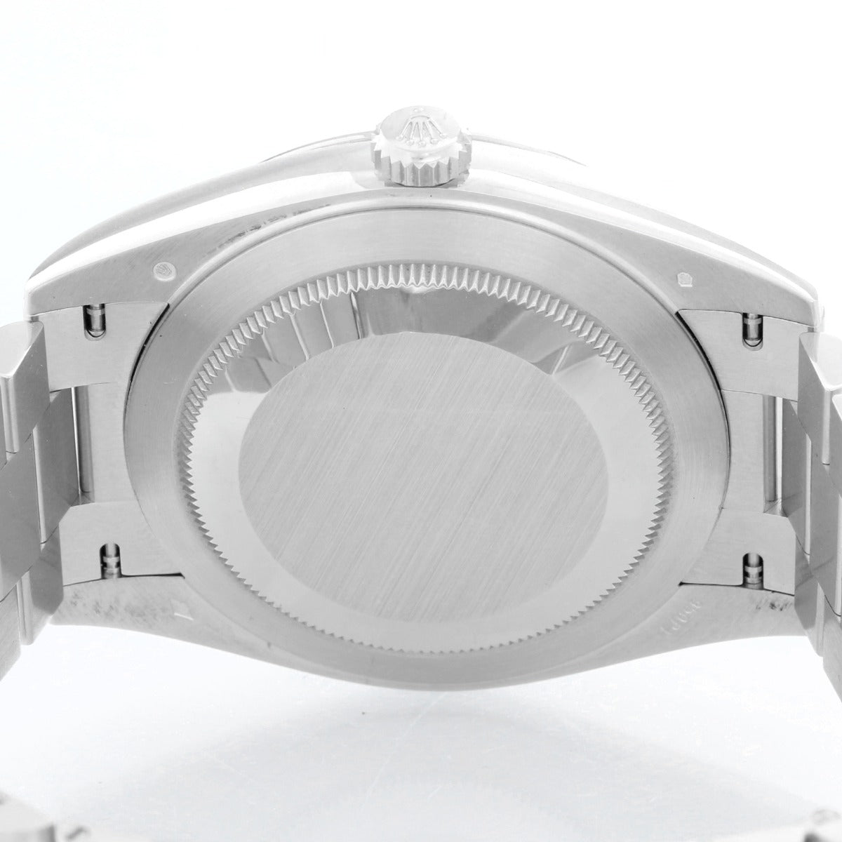 Rolex Platinum President Day-Date Men's Watch 228206 - Automatic winding, 31 jewels, Quickset, sapphire crystal. Platinum case with smooth bezel . Ice Blue with dial markers and diagonal motif. Platinum hidden clasp President bracelet. Pre-owned with box and card. Card dated 2015