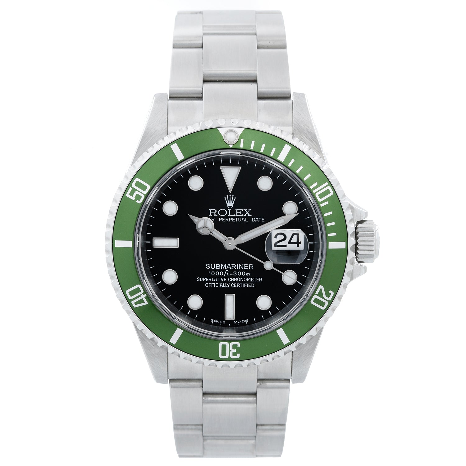 • Rolex Kermit Submariner Men's "Flat Four" Stainless Steel Watch 16610