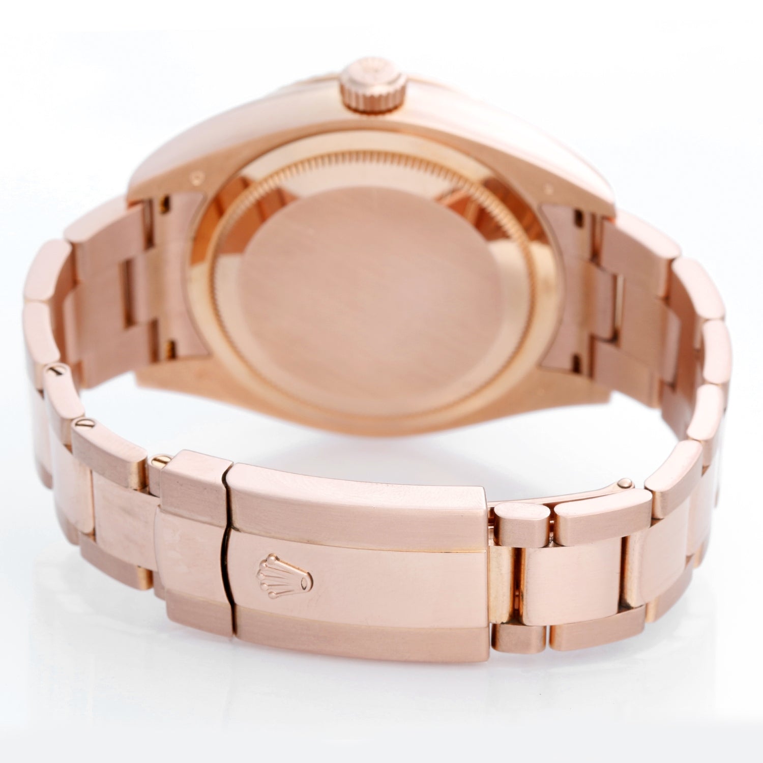 Rolex Sky-Dweller Men's 18k Rose Gold Annual Calendar GMT Watch 326935 - Automatic winding, perpetual calendar and GMT feature. 18k rose gold case with fluted bezel (42mm diameter). White dial with rose gold Roman numerals; date; second time zone; month indicator. 18K Rose gold bracelet with folding oysterlock clasp . Pre-owned with Rolex box and books.