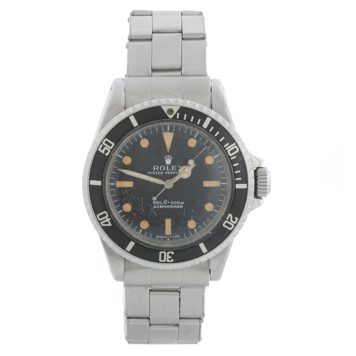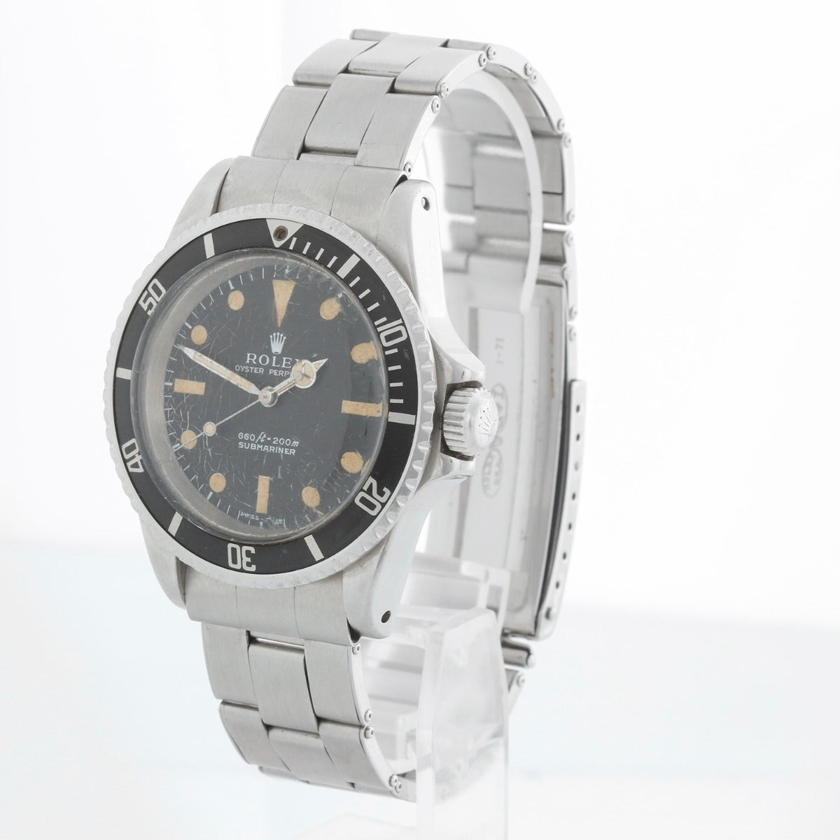 Vintage Rolex Submariner Black Dial Men's Automatic Watch 5513 Feet First - Automatic winding; acrylic crystal with aging. Stainless steel case (41mm diameter). Black dial- Great Patina. Rolex Stainless Steel Oyster bracelet with flip-lock clasp. Pre-owned with Rolex box and books. Circa 1970.