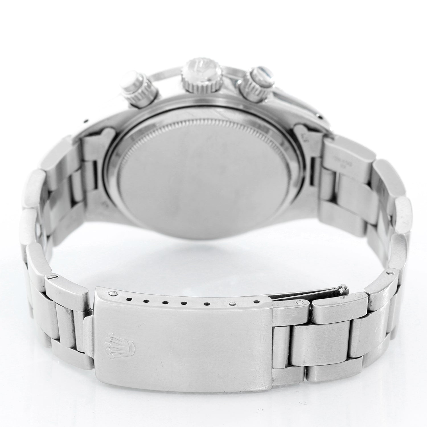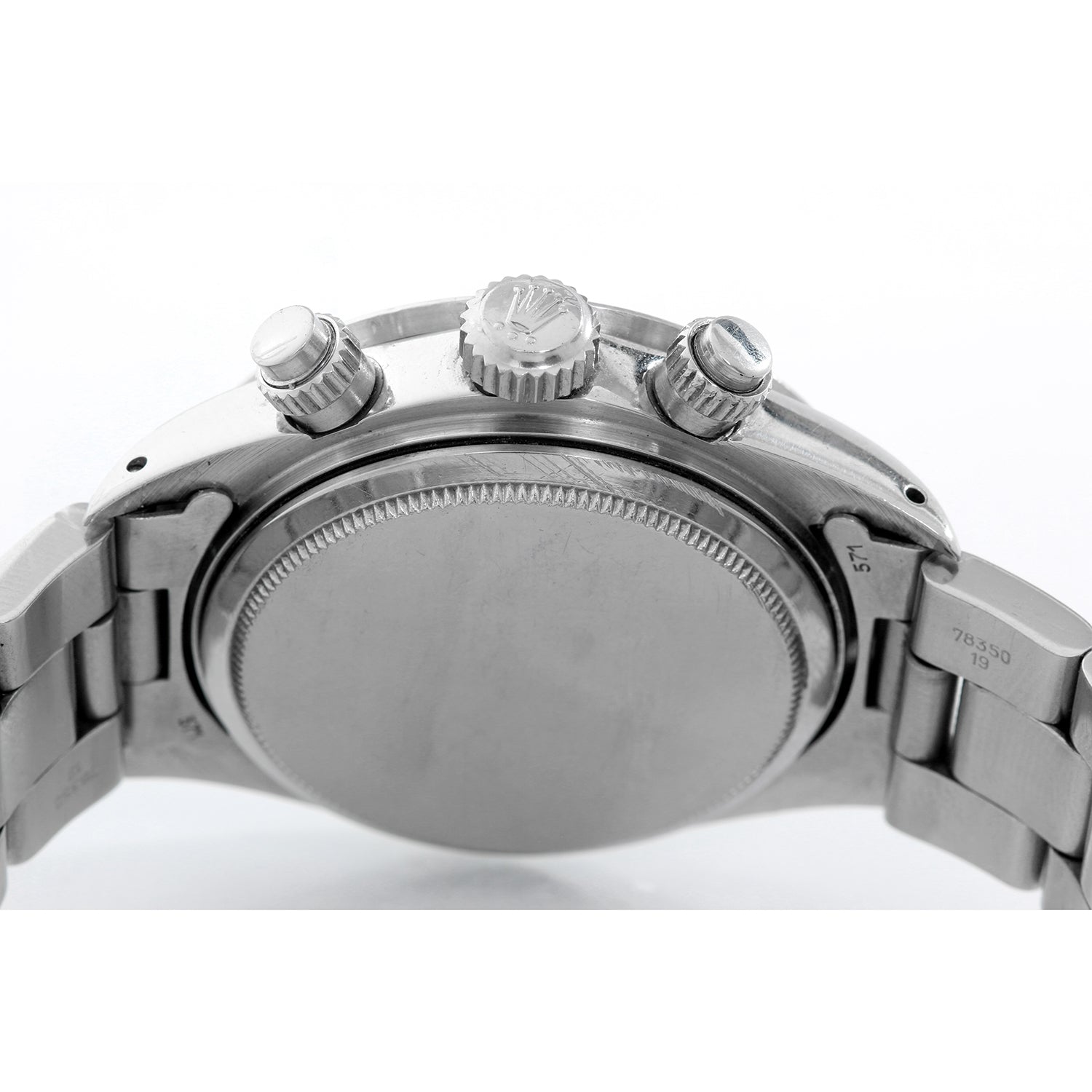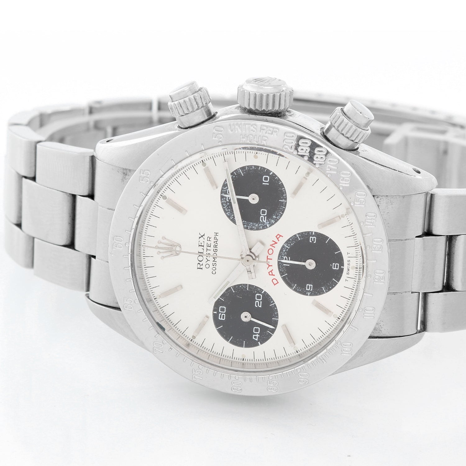 Rolex Very Collectible Vintage " Big Red" Cosmograph Daytona Model 6265 - Manual winding chronograph. Stainless steel case ( 36 mm ) . Silver dial with black sub dials and the word Daytona in red letters. Stainless steel Oyster bracelet. Serial # 5582585 - Pre-owned with the original box. Very collectible vintage Daytona. Circa 1979. The dial is not perfect but very presentable.