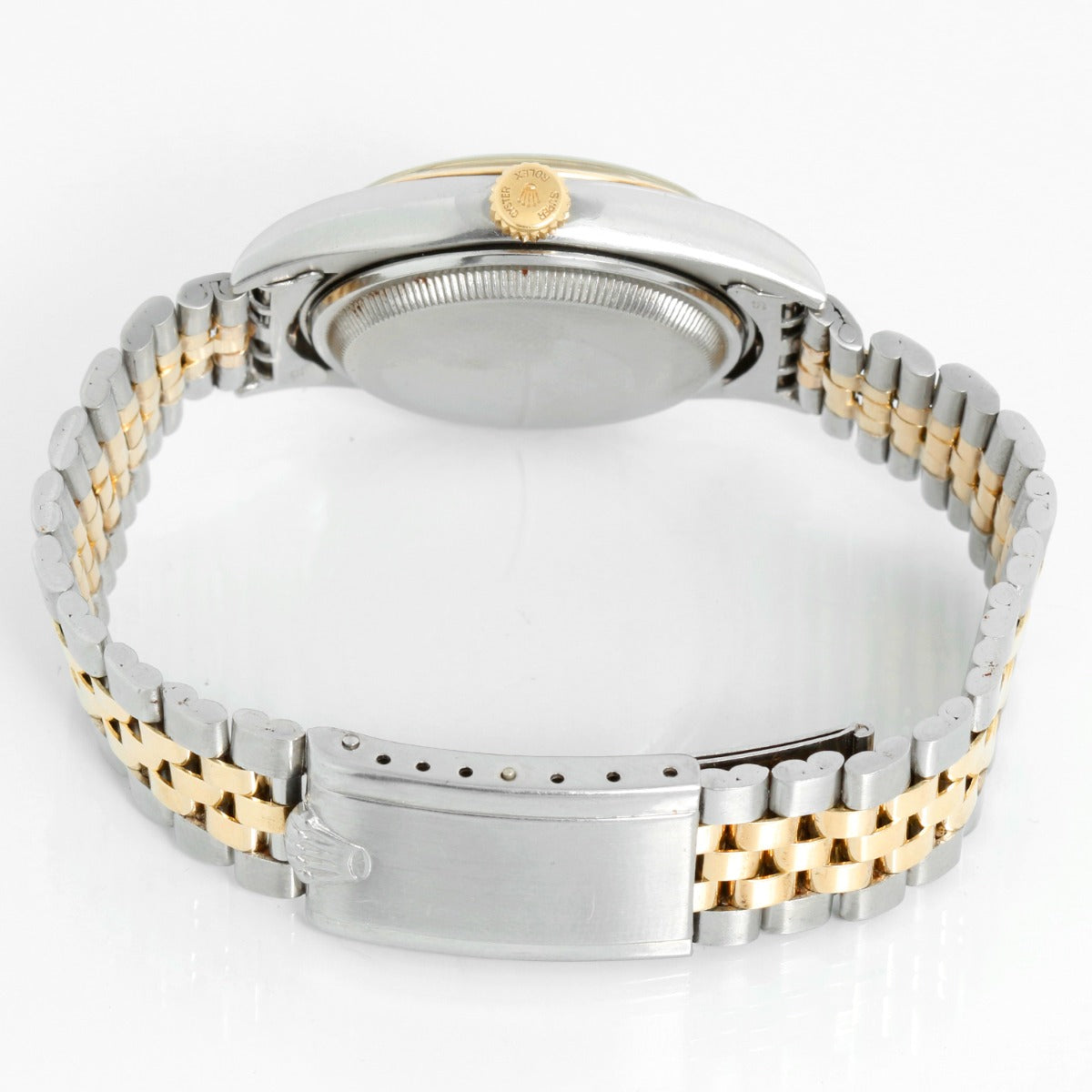 Rolex Vintage Oyster Perpetual Ovetone Men's Watch 6105 - Automatic winding with date. Stainless steel case with gold engine turned bezel (34mm diameter). Cream dial with gold arrowhead markers; red date wheel. Spectacular condition original crimped steel and gold bracelet and super oyster crown . Pre-owned with Rolex box. Circa 1950's.
