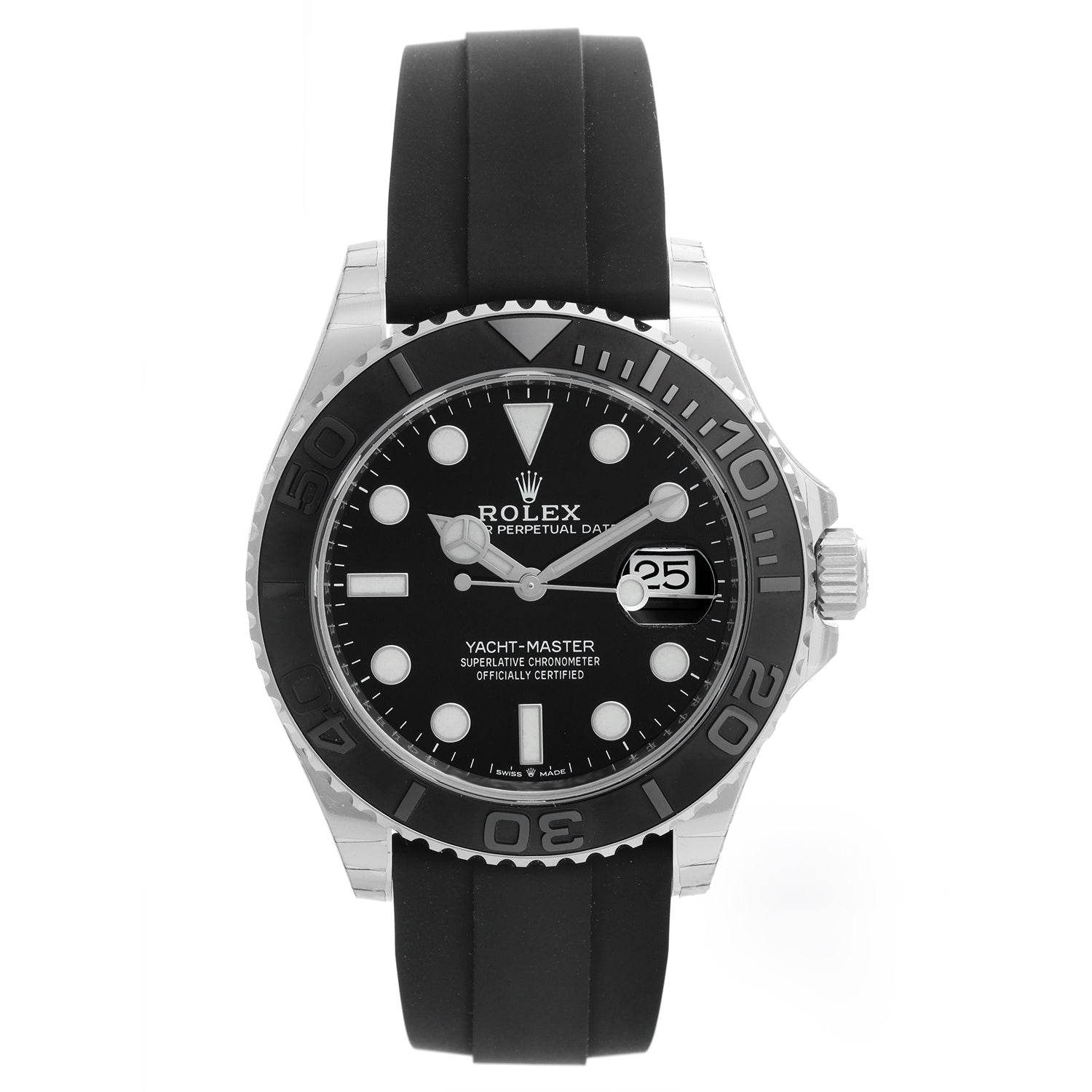 Rolex Yacht-Master 18K White Gold Men's Watch 226659 - Automatic Chronometer. 18K White gold case ( 42 mm). Black dial with luminous hour markers. Black Oysterflex Bracelet. Unused display model. Rolex box and papers