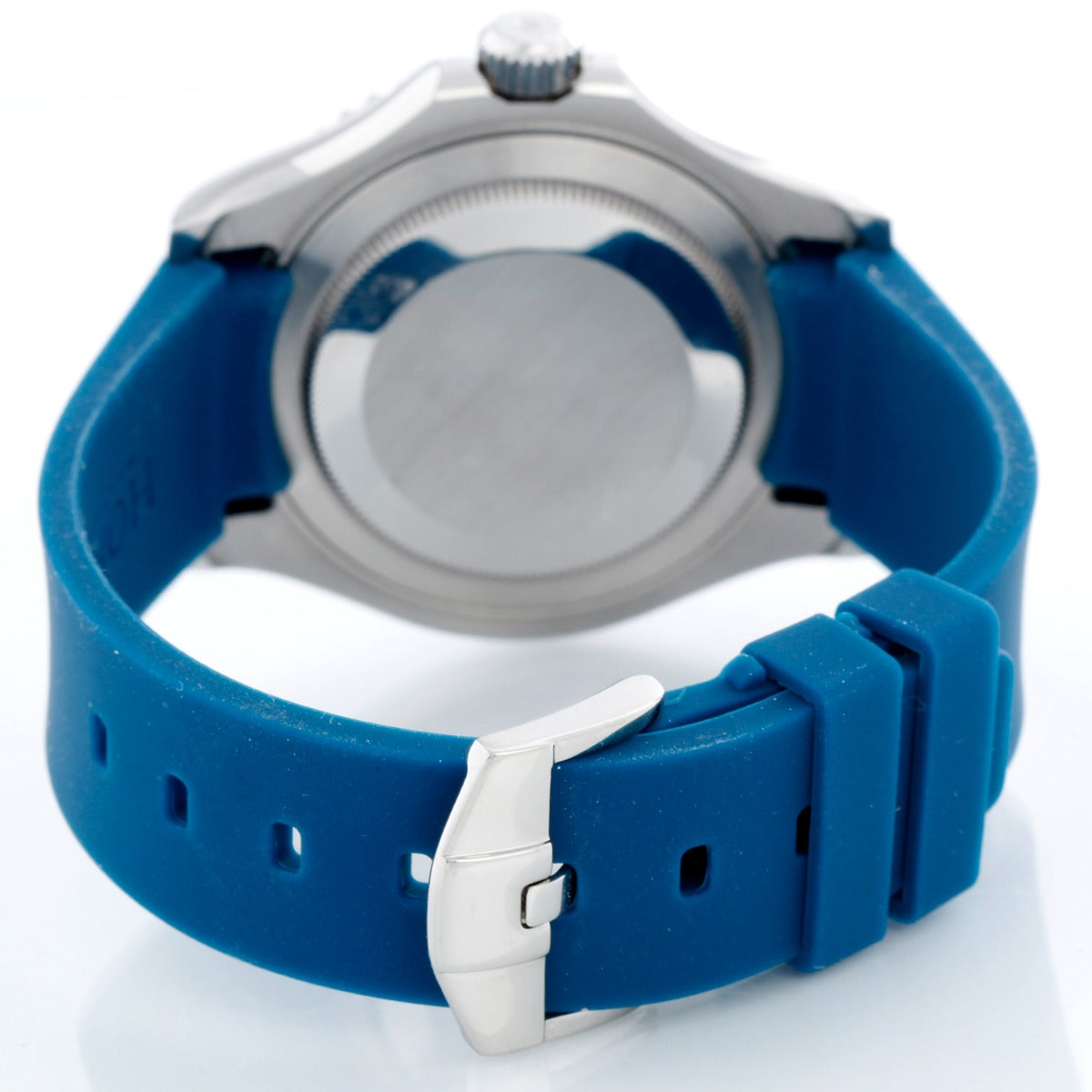 Automatic winding, 31 jewels, Quickset, sapphire crystal. Stainless steel case with platinum bezel (40mm diameter). Blue dial with luminous markers. Stainless steel Oyster bracelet; plus blue rubber strap included . Pre-owned with Rolex box and book.