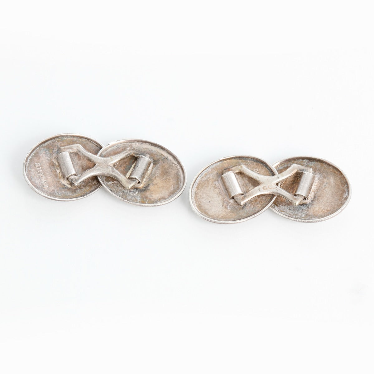 Sterling Silver Oval Cufflinks - Sterling silver oval links with black accents. Diameter 16 mm. Pre-owned with custom box. .