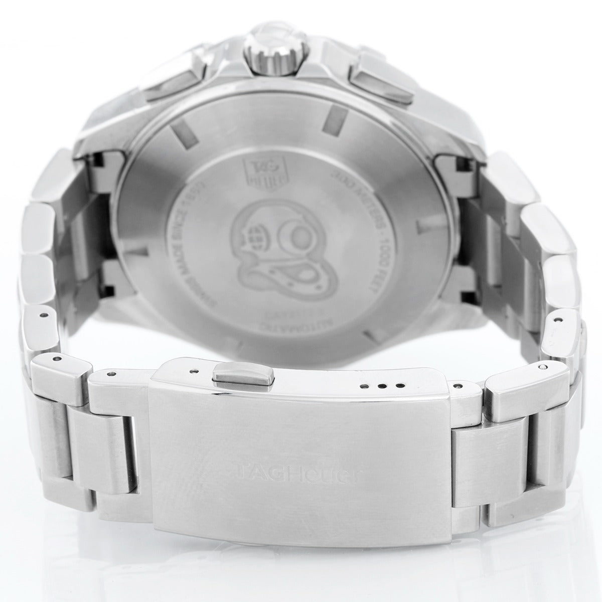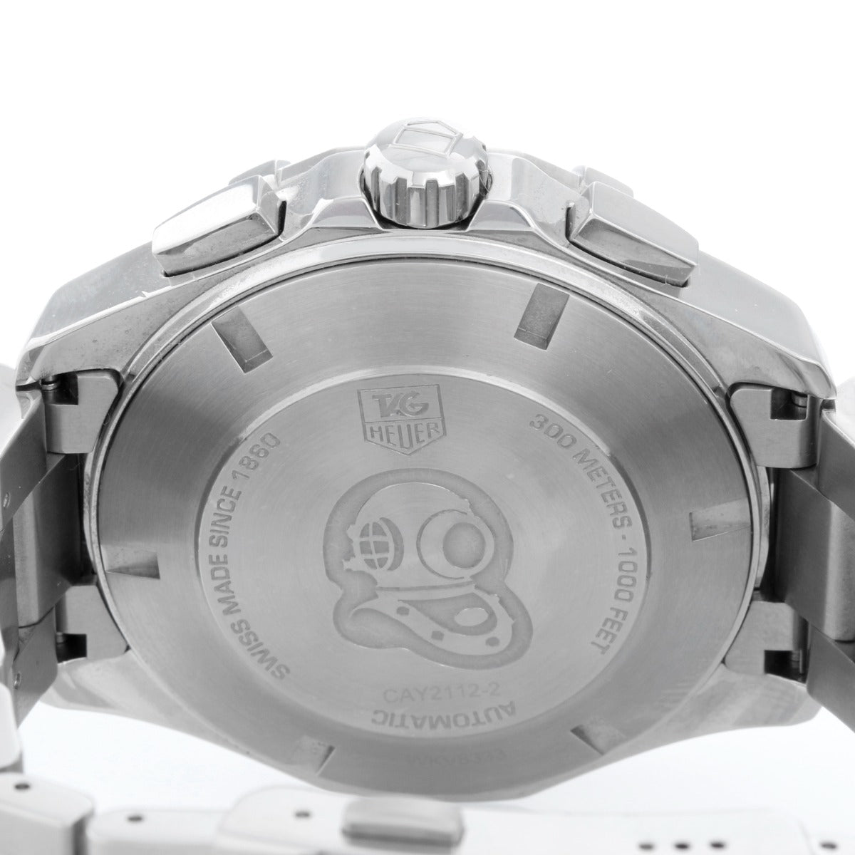 Tag Heuer Aquaracer Automatic Chronograph Men's Diver's Watch CAY2112.BA0927 - Automatic winding; chronograph. Stainless steel case (43mm diameter). Blue with Silver Luminescent Hands and Index Hour Markers dial. Stainless steel Aquaracer bracelet. Pre-owned with custom box.