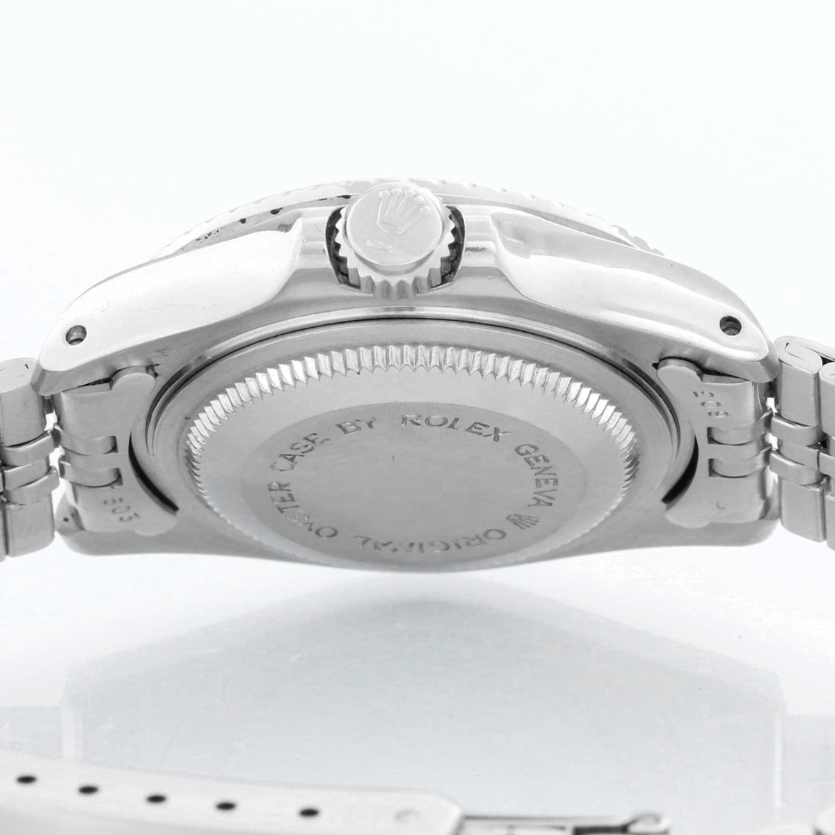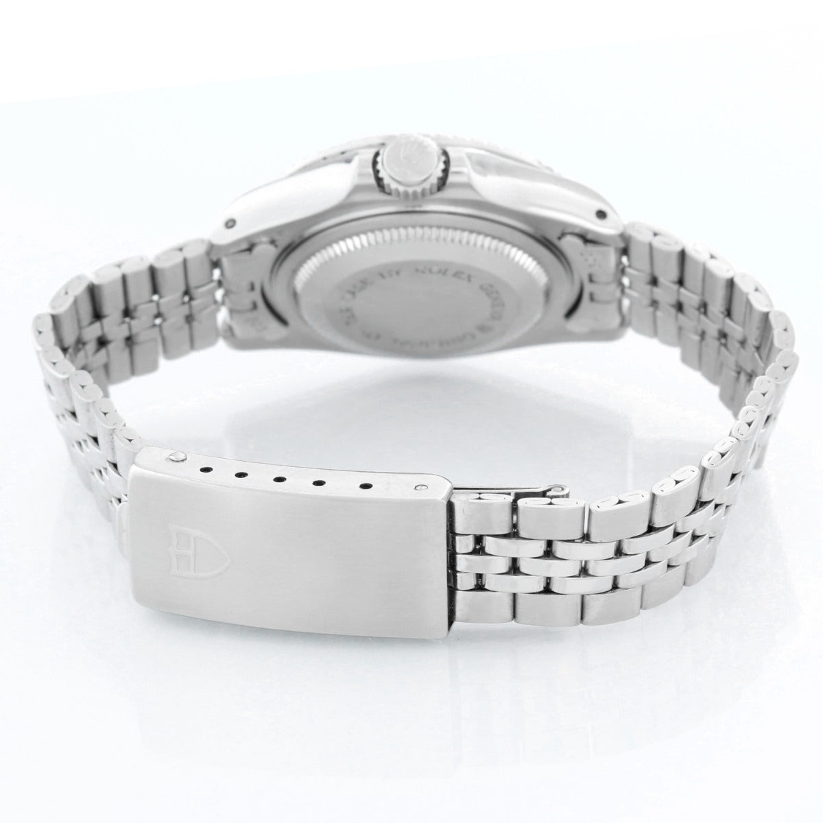 Tudor Ladies Submariner Stainless Steel Watch Ref. 96090 - Automatic winding. Stainless steel case with time lapse rotating bezel (26mm diameter). Black dial with white hour markers. Stainless steel Jubilee style bracelet. Pre-owned with custom box.