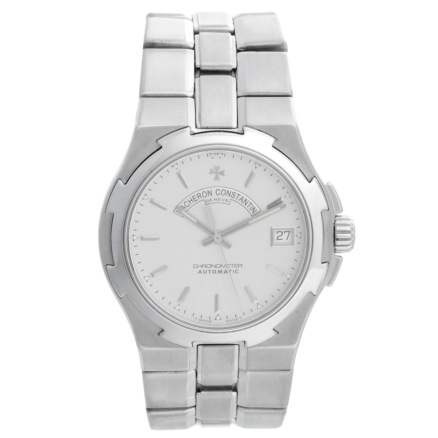 Vacheron Constantin Overseas Chronometer Watch 42040 - 72040 - Automatic . Stainless steel ( 37 mm ) . Textured silver dial with stick hour markers and date at 3 o'clock . Stainless steel Vacheron Constantin bracelet with double folding clasp . Pre-onwed with custom box.