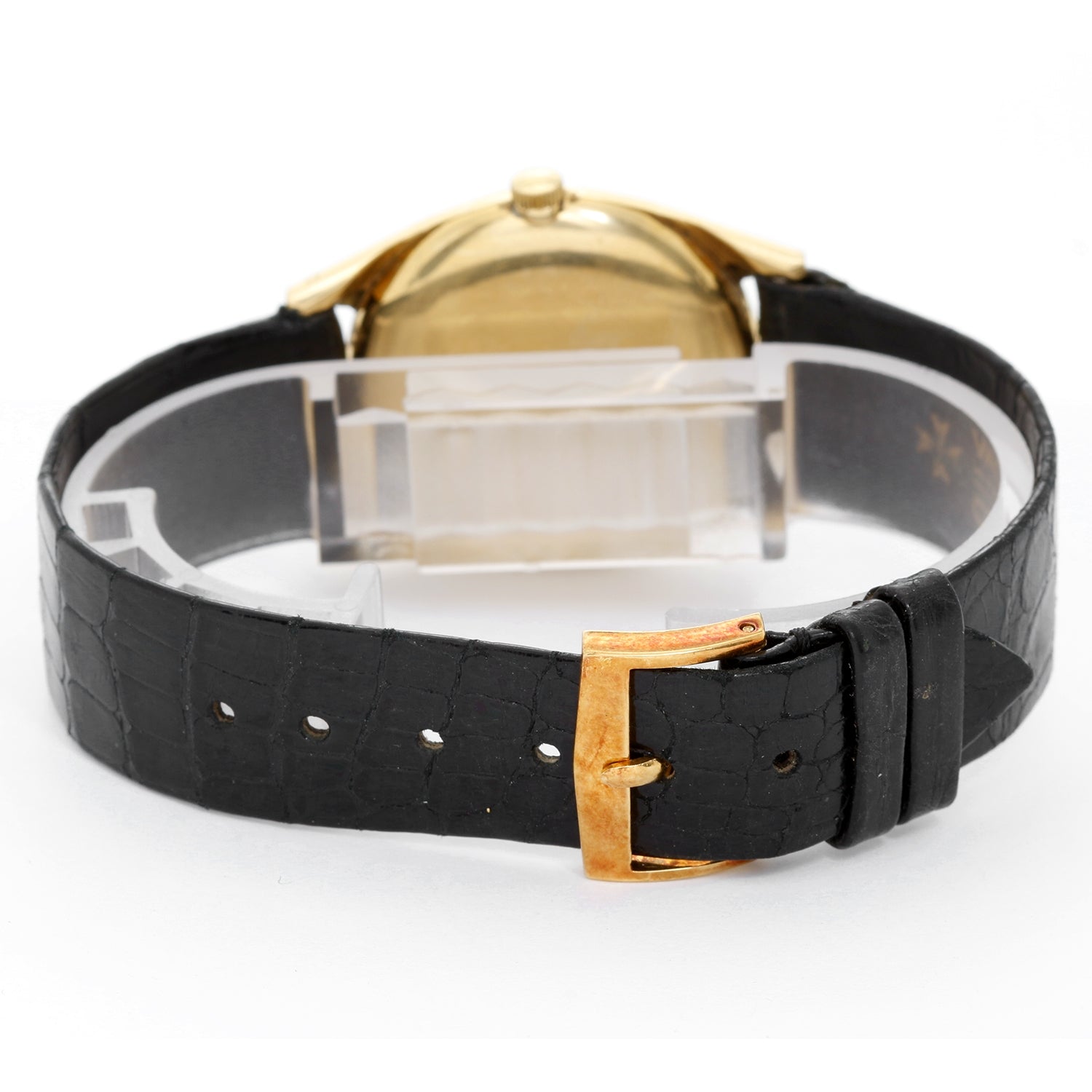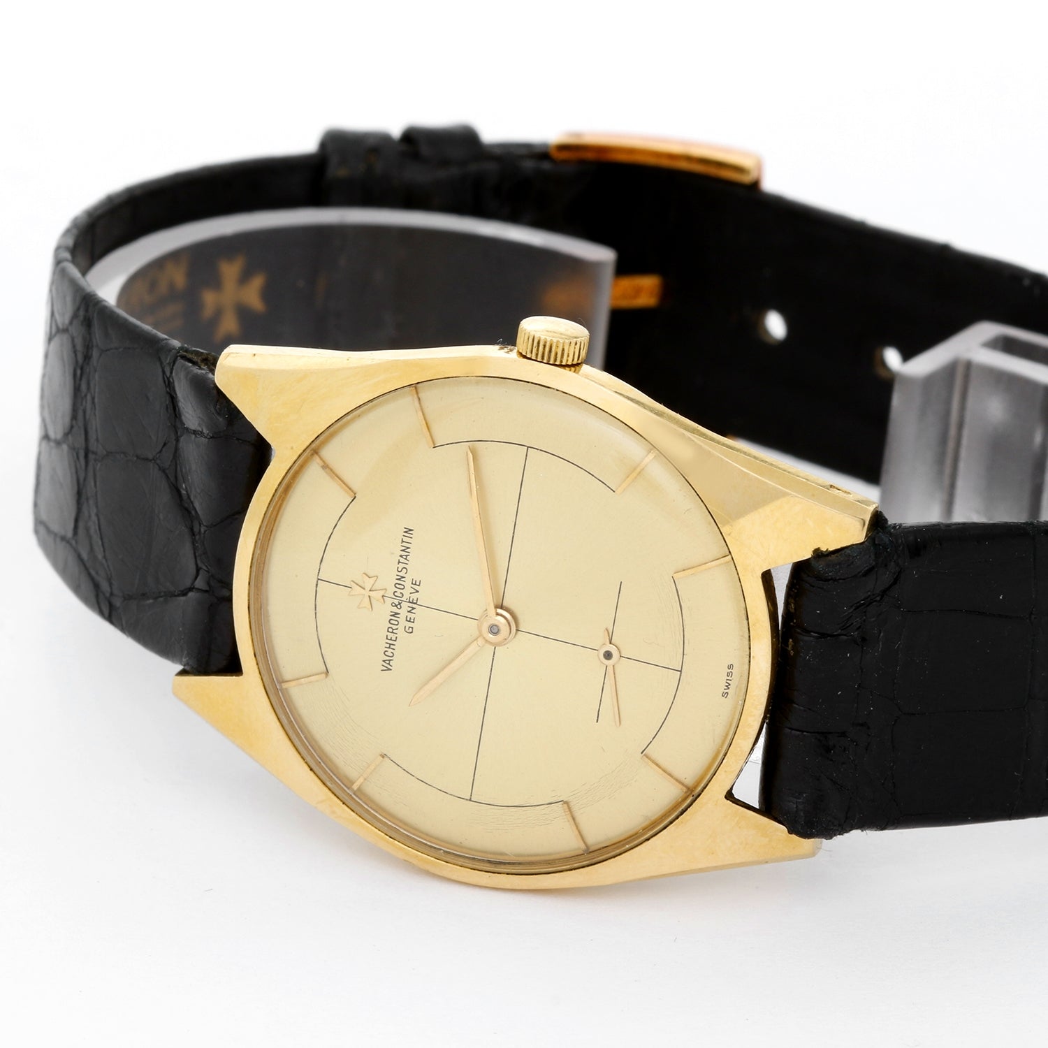 Vacheron Constantin Vintage 18K Yellow Gold Men's Watch - Manual. 18K Yellow Gold ( 29.5 mm ). Art deco champagne dial with a sleek sub dial at 6 o'clock. Original Vacheron Constantin black leather strap and buckle. Pre owned with box. Extremely rare. 1st one we have ever seen. Circa 1950's- 1960's.