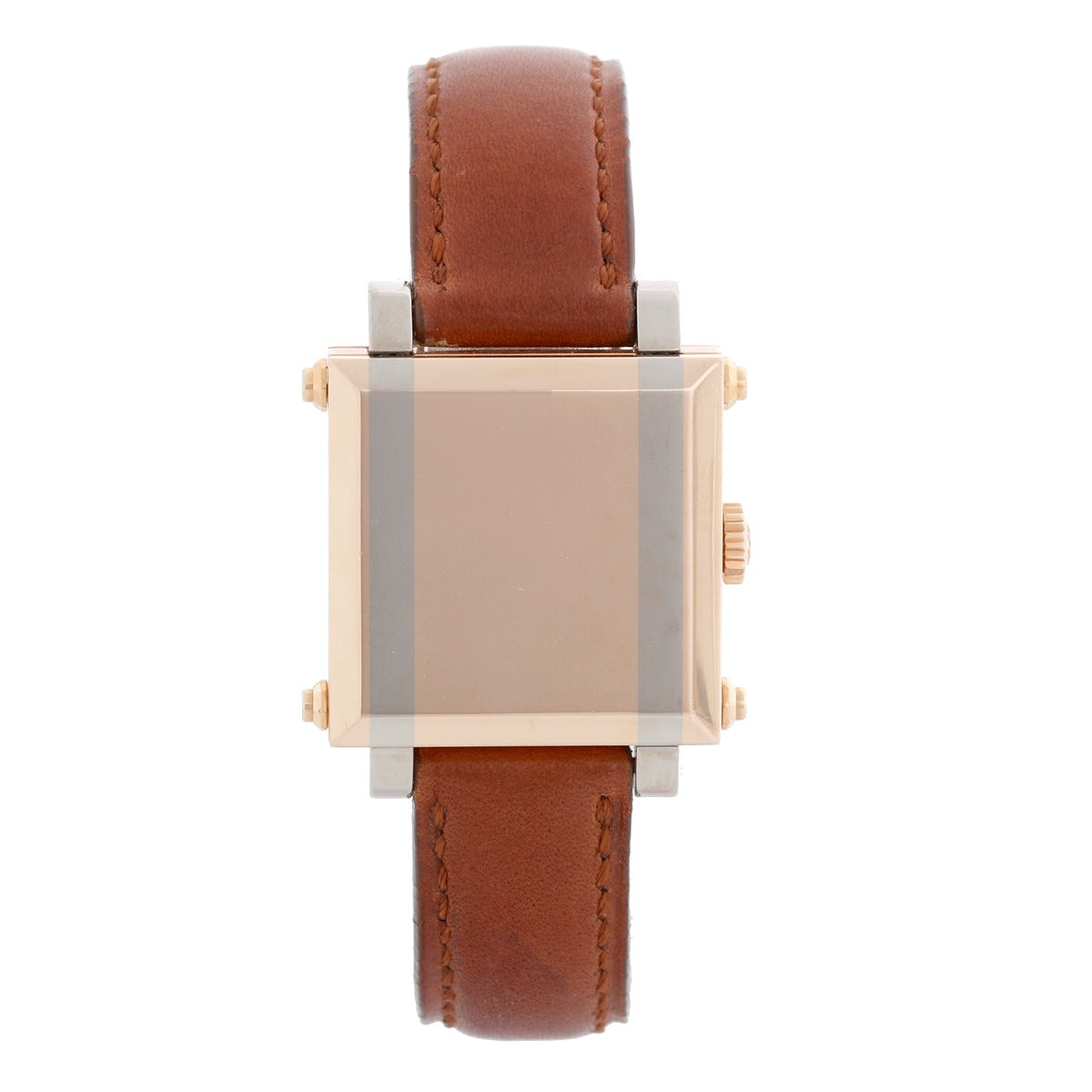 Very Rare Patek Philippe Cabriolet Gondolo 5099RG 18k Men's Watch - Manual winding. 18k rose and white gold case (29mm x 38mm)with white gold lugs and inlaid white gold stripes on cover. Faceted hinged case cover released by depressing 2 buttons on either side. Salmon colored dial with black Arabic numerals. Brown Patek Philippe strap with 18k rose gold Patek Philippe tang buckle. Pre-owned and unpolished with Patek Philippe box and open papers.(We have left the case in unpolished original condition as many collectors prefer. We will provide a complimentary polish at the new owner's request.).