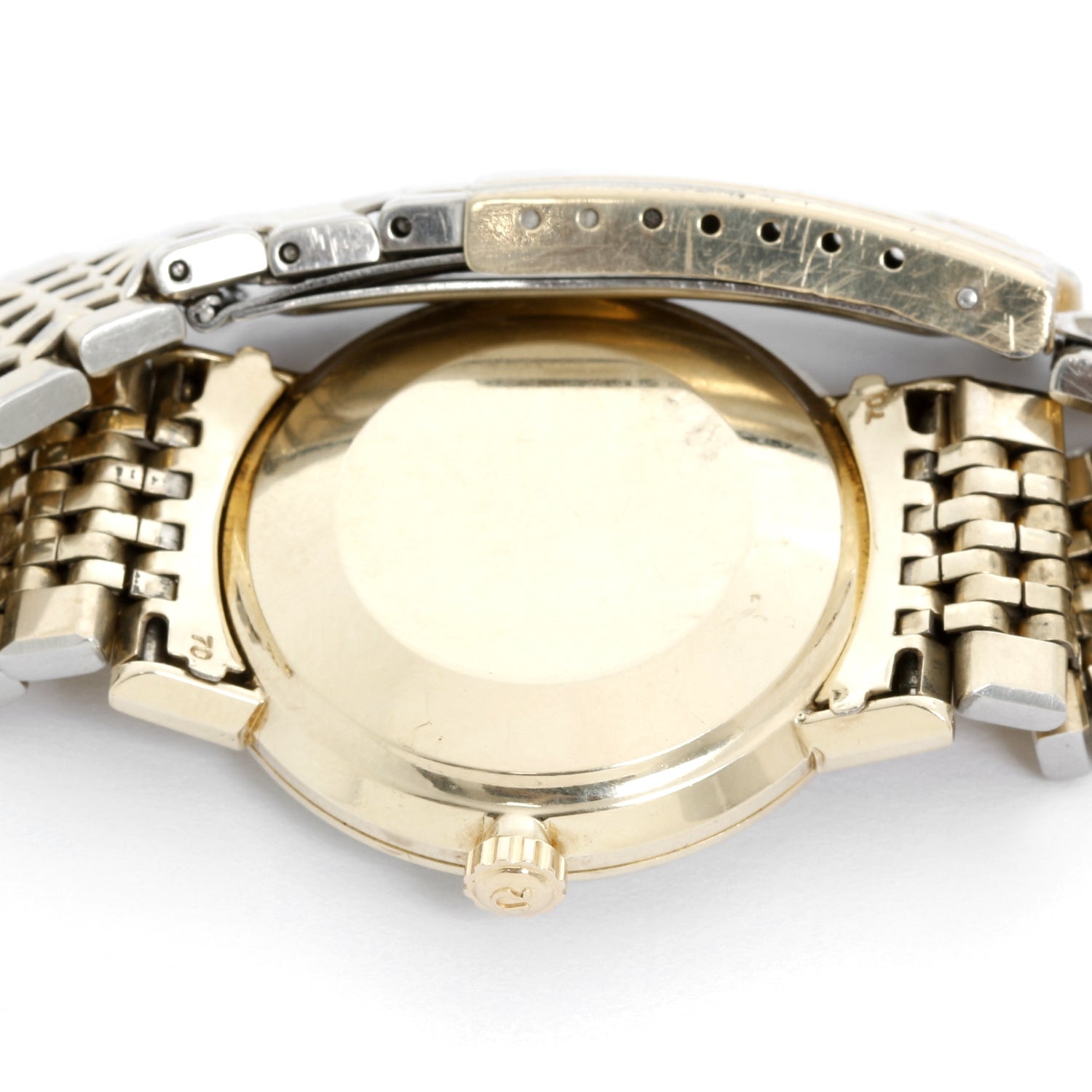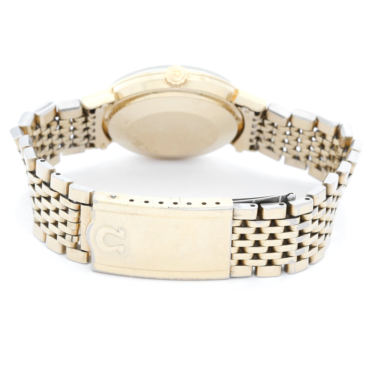 Vintage Omega Seamaster De Ville Mens Watch - Automatic winding. Gold plated case (34 mm) . Silver dial with gold stick markers; date at 3 o'clock position. Gold plated bracelet . Pre-owned with custom box. Circa 1960's.